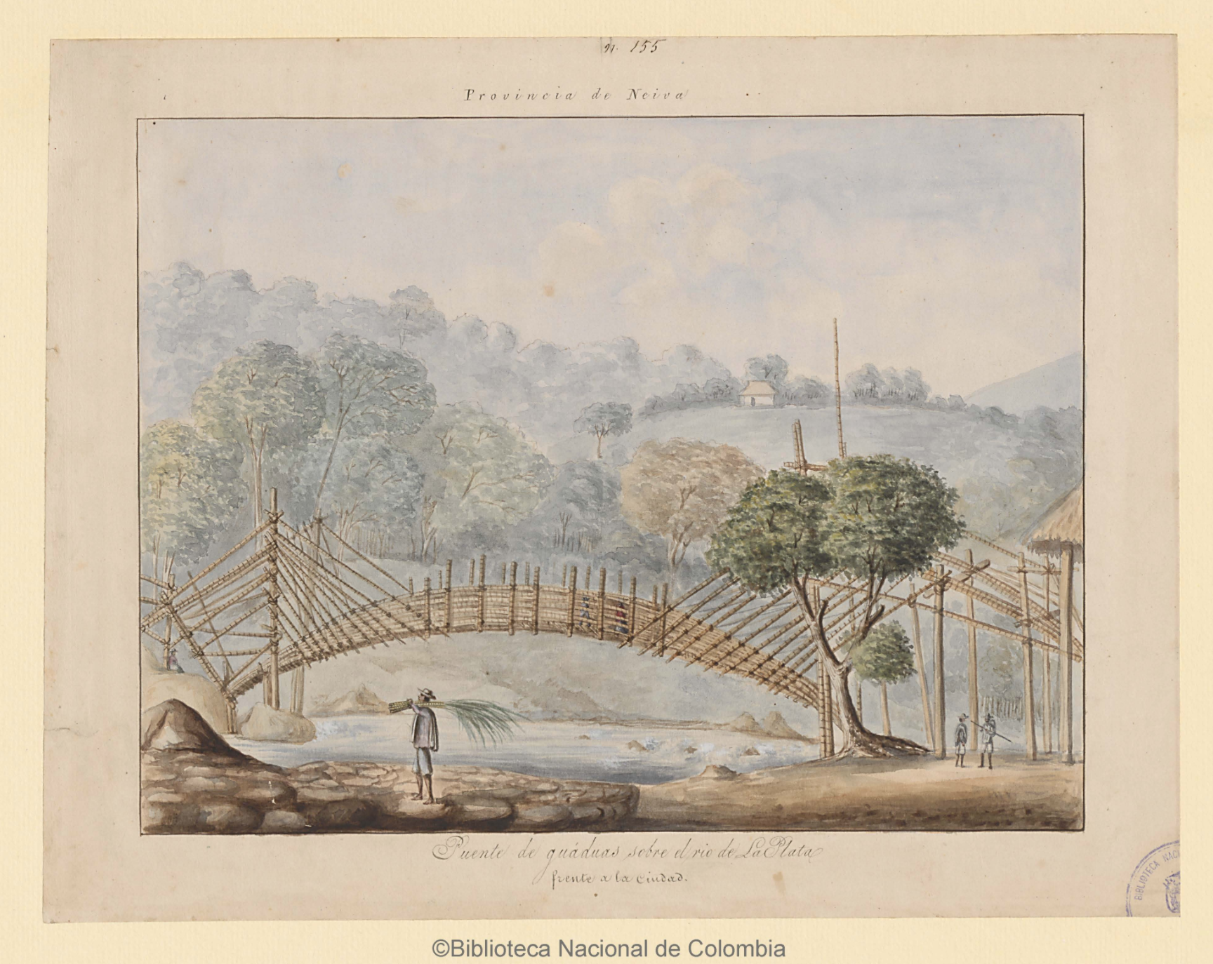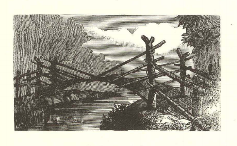 Este grabado se encuentra acompañando un artículo que habla sobre la guadua. La narración destaca que las riquezas vegetales que posee Colombia nos fueron dadas en recompensa por lo alejado que se encontraba nuestro país de las civilizaciones, así lo menciona Ramón Guerra. Guerra describe a Colombia como un tesoro vegetal, cuya flora y fauna maravillan a cualquier viajero que tiene la fortuna de pasear por el paisaje colombiano. Dentro de esta exaltación a la naturaleza colombiana, y el paisaje que crea, destaca la guadua. La guadua muestra, otra vez, como en el Puente de Icononzo una naturaleza que es capaz de cuidarse sola, que sabe alejarse del viento y del huracán, y arrimarse a los bosques y selvas que la protejan. El grabado, específicamente, destaca cómo se pueden construir puentes a partir de la guadua; otra vez, la naturaleza es suficiente para crecer por ella misma, pero el hombre sabe aprovecharse de eso.